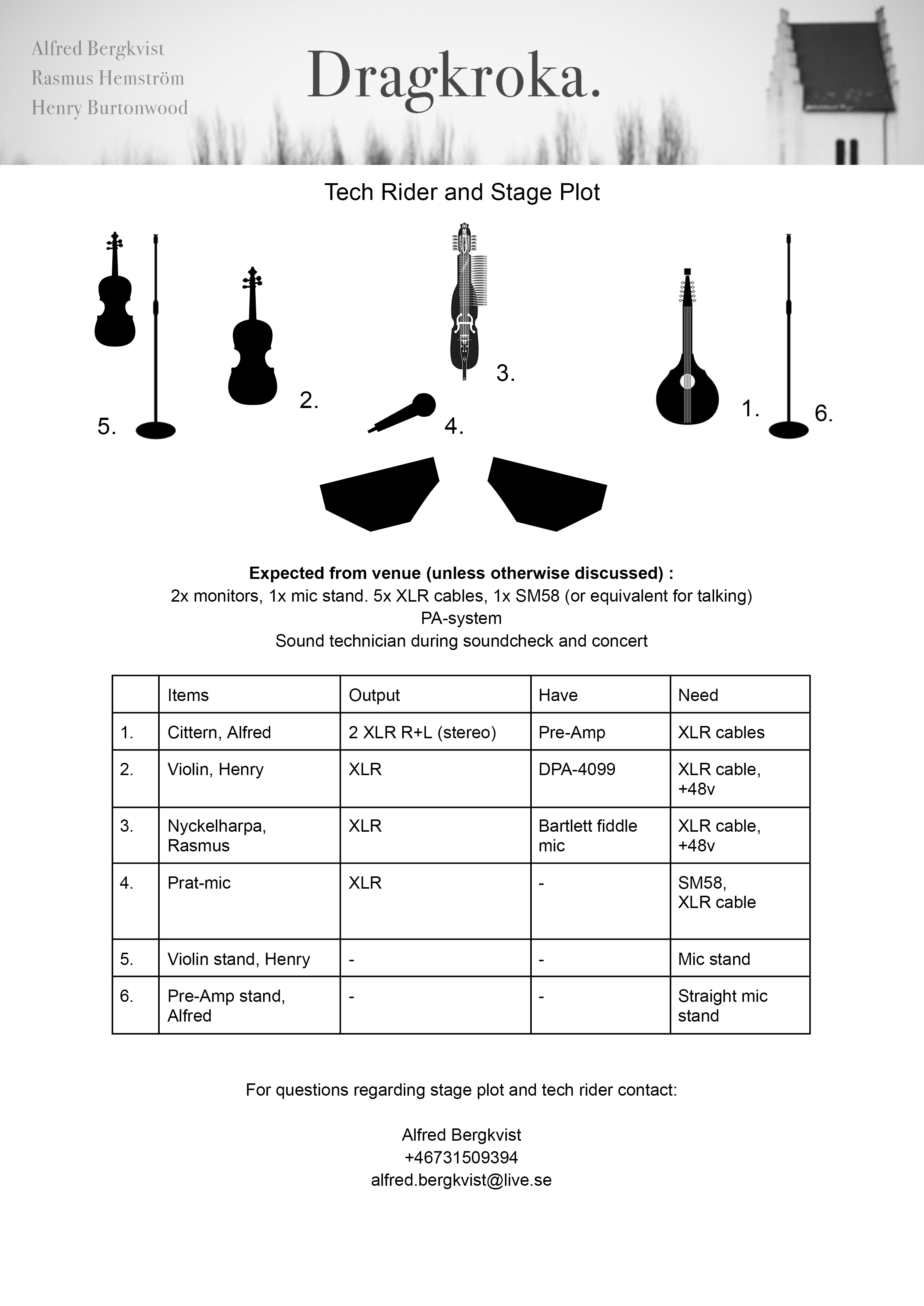 Dragkroka is a folk trio that fervently uncovers music from the nordic countries – with the rhythmical bass patterns of the cittern, a fiddle that continuously tests the limits of harmonic possibilities and, an anchored, clear and energetic melody delivered from the Swedish nyckelharpa – Dragkroka plays traditional Scandinavian music, as well as new compositions with inspiration from this tonality.